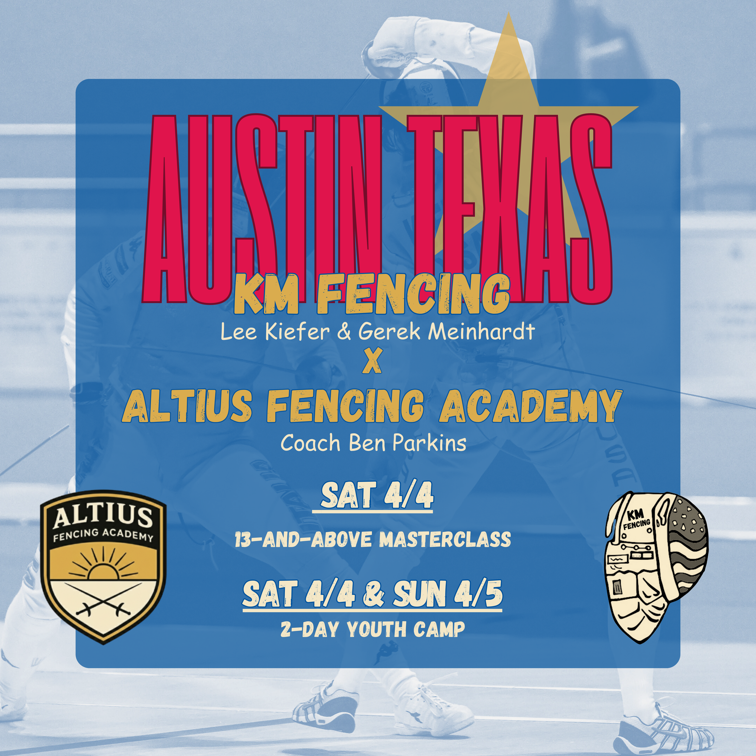 Olympians Lee Kiefer and Gerek Meinhardt are heading to Austin, Texas, this April to run a 13+ masterclass and a 2-day youth camp at Altius Fencing Academy, recently founded by Coach Ben Parkins.